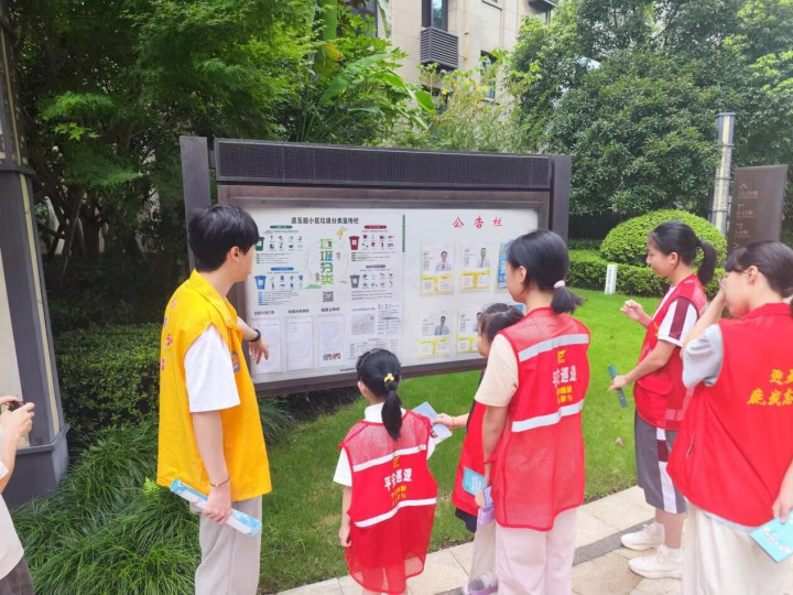 这些“小小网格员”们在社区专职网格员的带领下分组行动,深度参与垃圾分类实践环节。在小区垃圾分类投放点,孩子们一丝不苟地检查各色垃圾桶,发现混投的纸巾、塑料瓶等,便动手将其重新归类投放,亲身体验分类督导。移步社区宣传栏前,他们不仅认真检查宣传内容是否清晰、无遮挡、及时更新,还勇敢地担任起“小小讲解员”,主动向过往居民介绍区分可回收物与其他垃圾的方法,用童稚的声音传递环保理念。