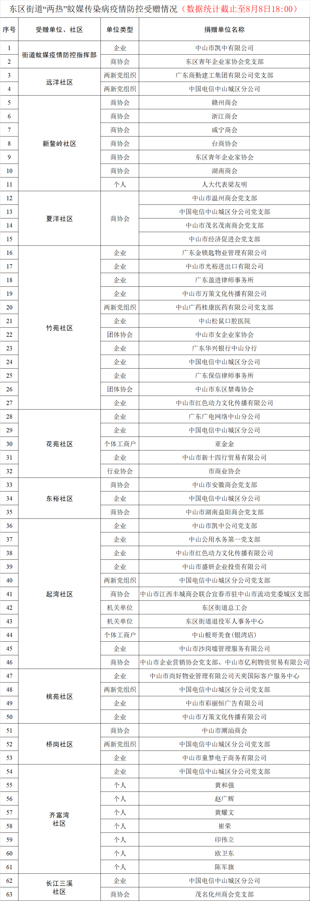 不少东区爱心企业、各大商协会